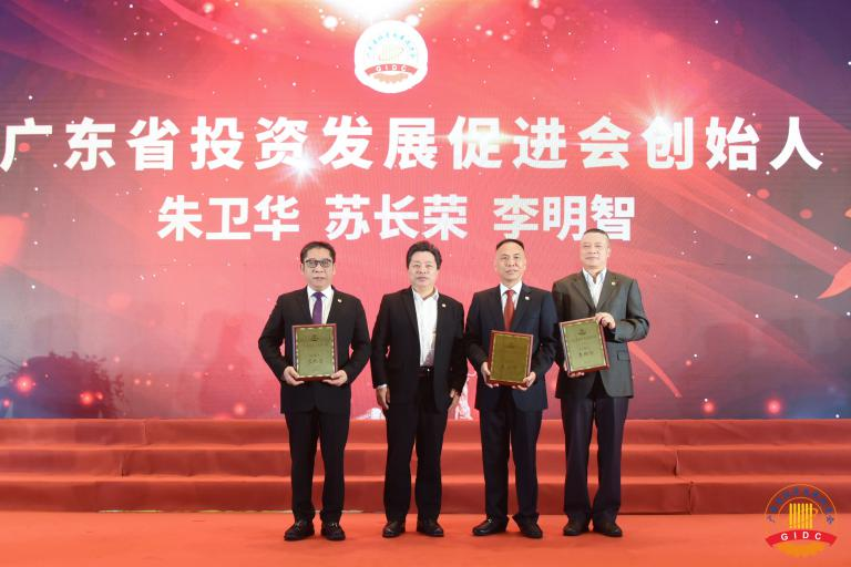 李阳春副部长为广东省投资发展促进会创始人朱卫华、苏长荣、李明智颁发创始人牌匾,并为苏长荣颁发主席牌匾,为李明智颁发会长牌匾;苏长荣主席颁发了常务副会长、监事长、副会长牌匾;李明智会长颁发了监事、理事、会员牌匾,和秘书处聘书。