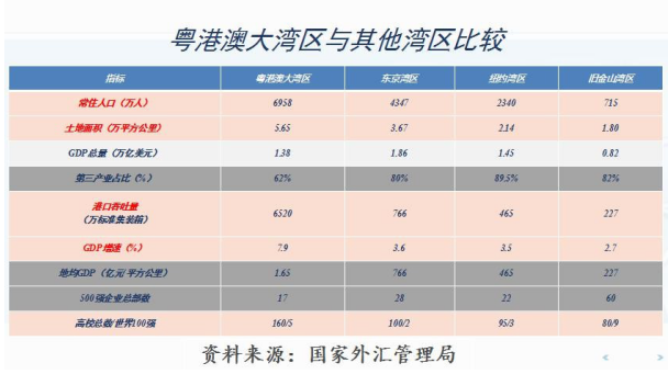 京湾区这三个世界一流的湾区,它的不同的特点在哪里?优势是什么?大家把这些特点找出来,就是我们的投资区域——就是离岸在岸的对接。与这些区域对比,只有粤港澳大湾区承载着离岸在岸对接,这就是我们主要的投资发展机会。